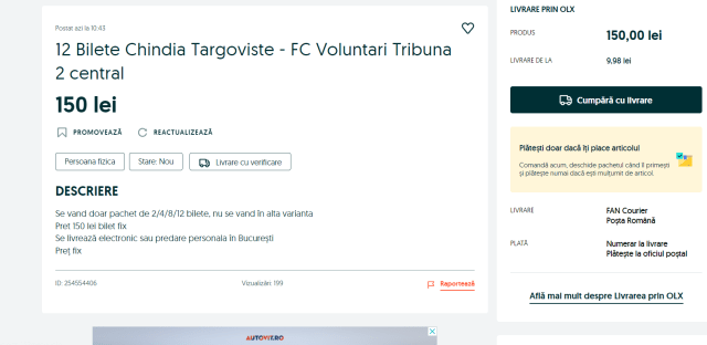BILETELE LA MECIUL CHINDIA – VOLUNTARI SE VÂND PE OLX LA PREȚURI DE CINCI ORI MAI MARI