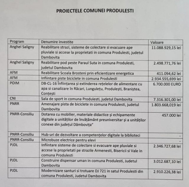 Mulțumesc din suflet, domnului Președinte al Consiliului Județean Dâmbovița, Corneliu Ștefan, pentru tot sprijinul și susținerea necondiționată acordată în dezvoltarea comunei Produlesti!